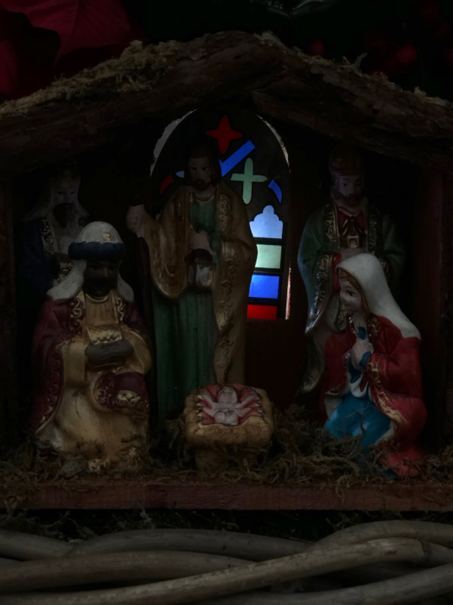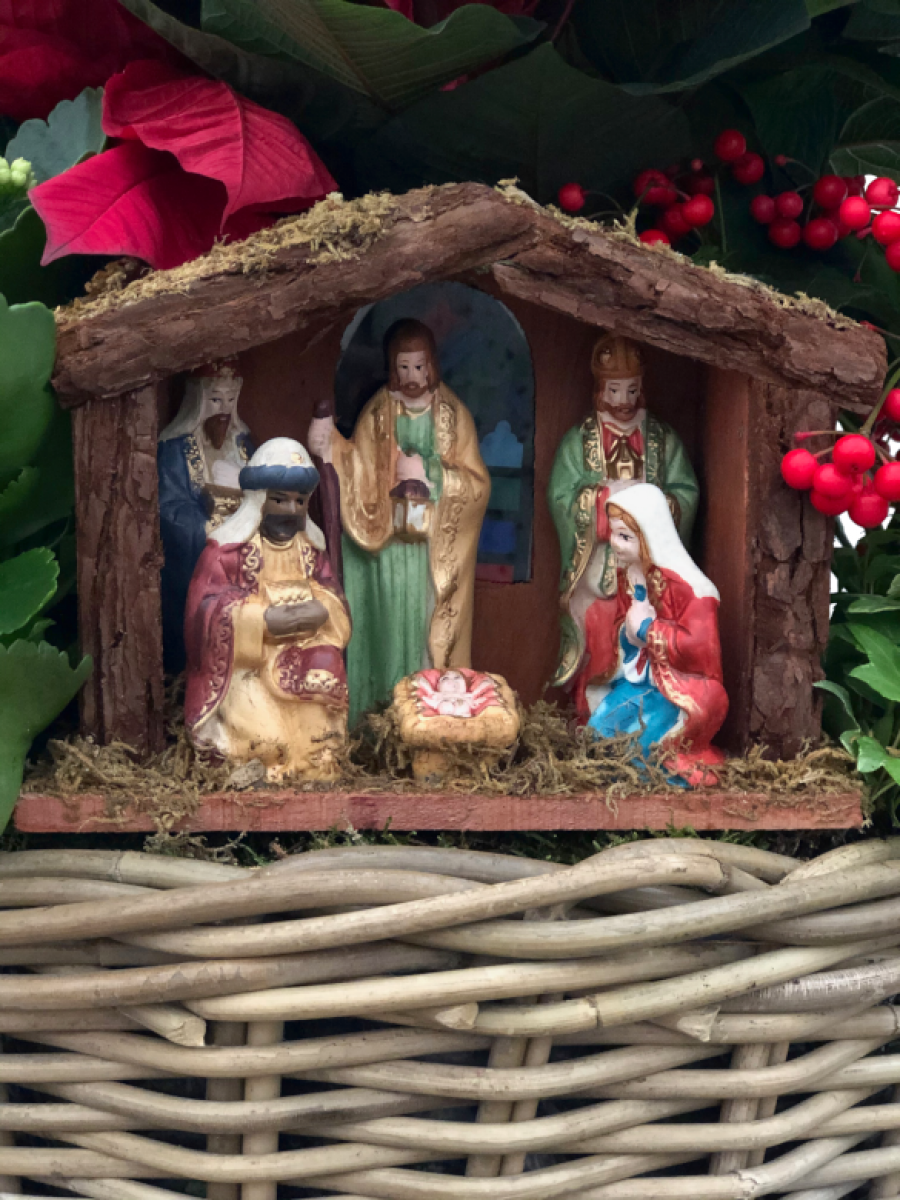 Belén en centro de flor de pascua (DISPONIBLE SOLO PARA MADRID)