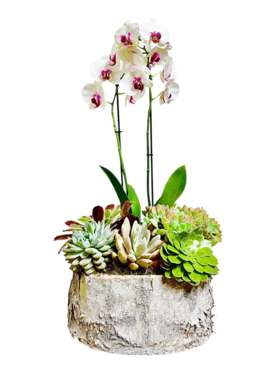 Centro de orquídeas con suculentas
