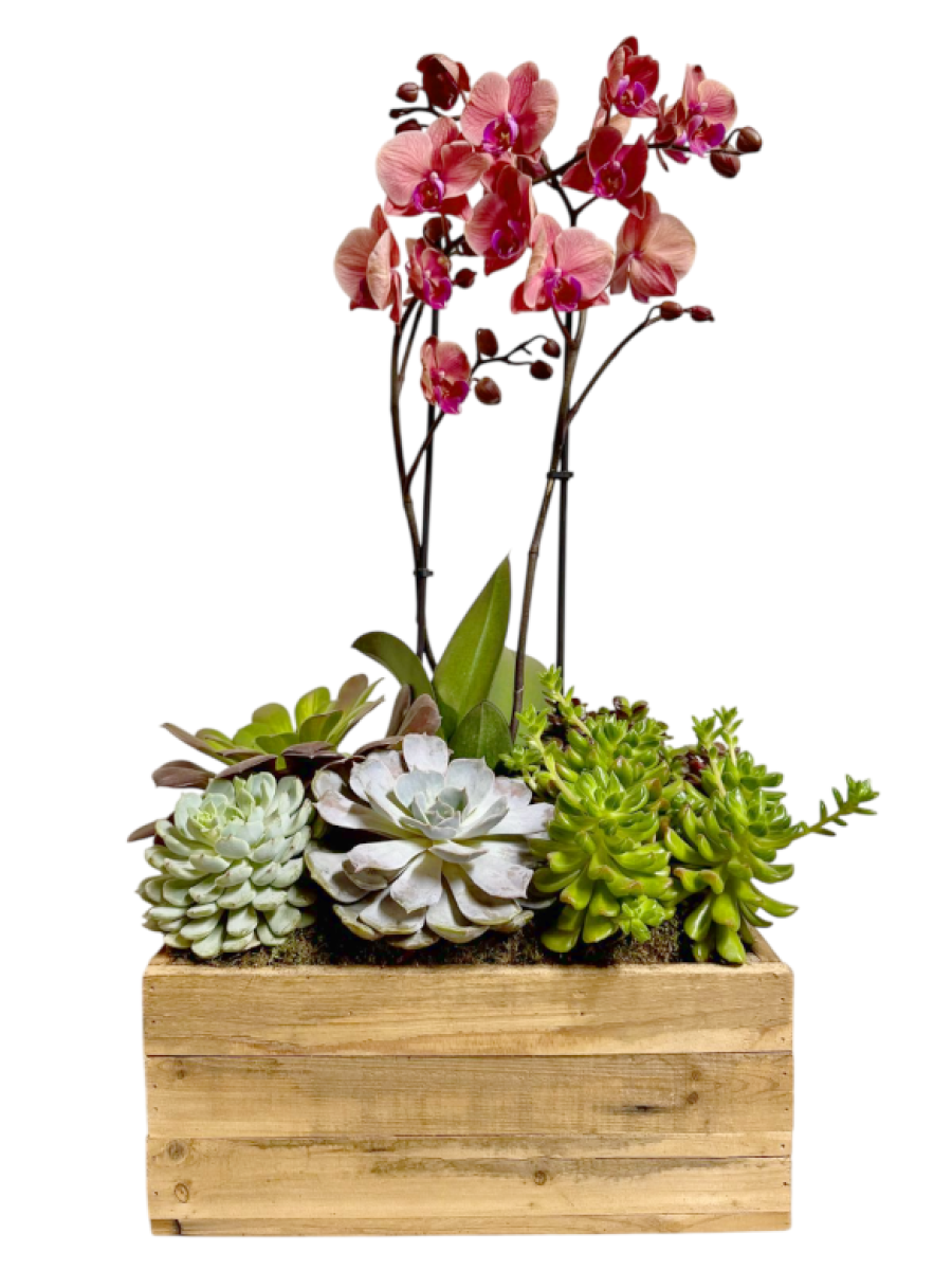 Centro de orquídeas con suculentas