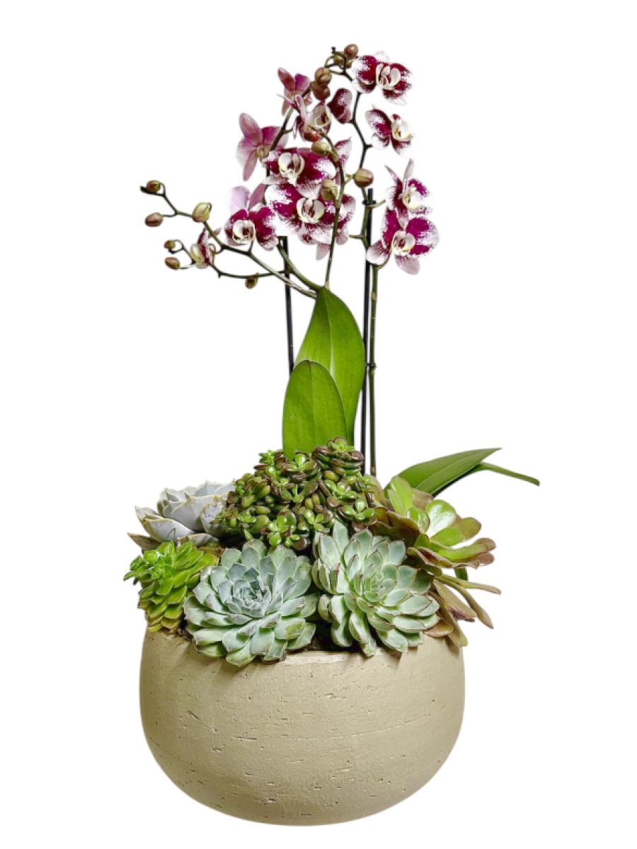 Centro de orquídeas con suculentas