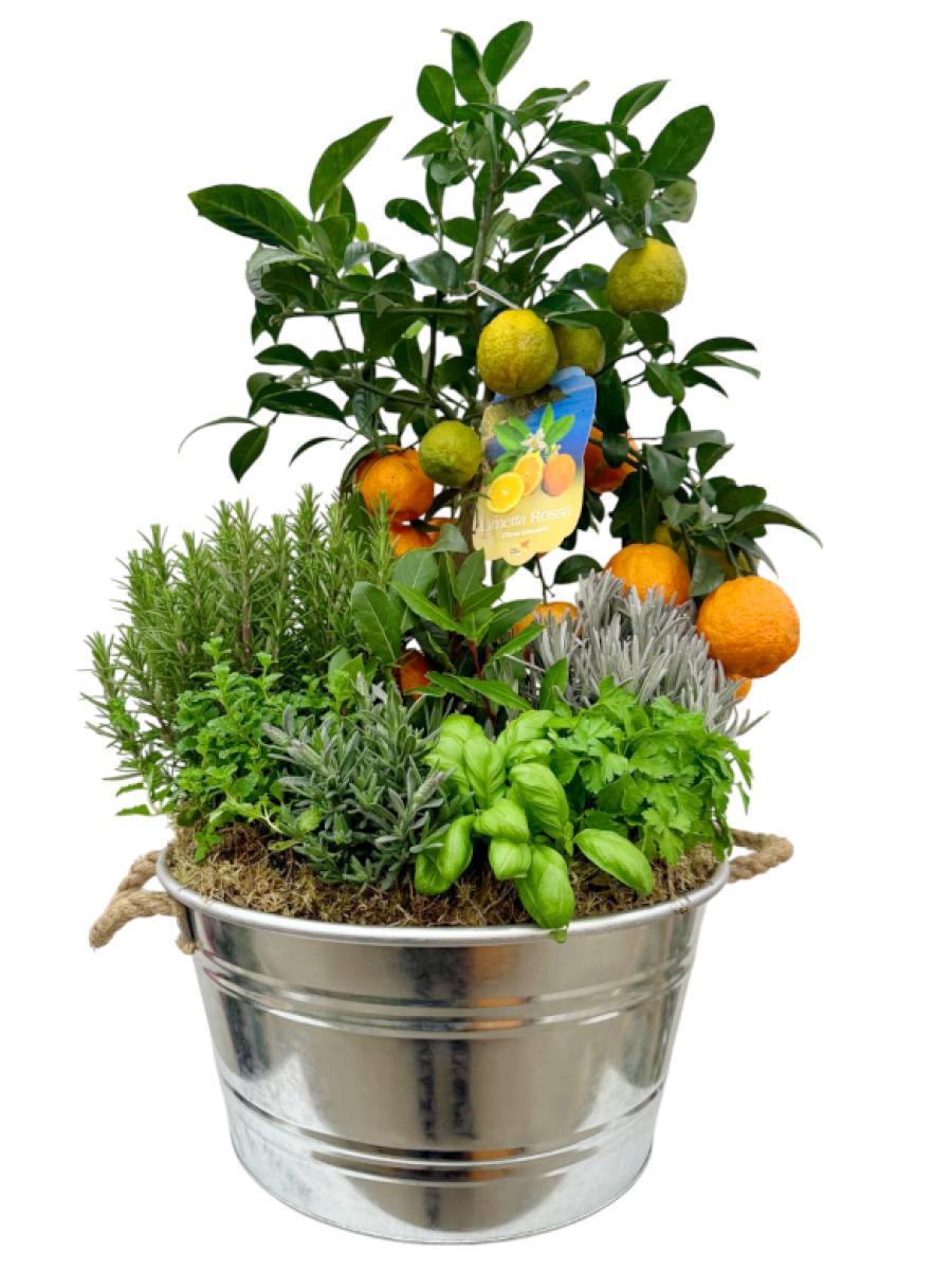 Mini huerto de aromáticas variadas con citrus Limetta rossa